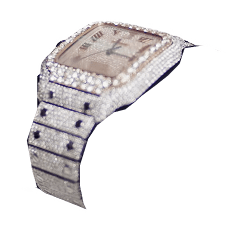 This is a Cartier Santos (Medium) that has been custom iced with aftermarket diamonds.